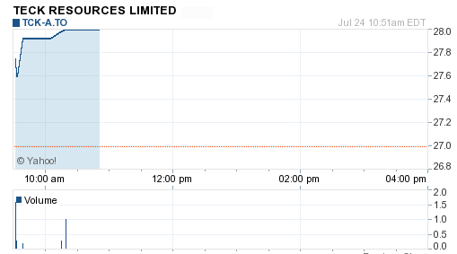 teck-resources-stock-price Cecilia Jamasmie | July 24, 2014 | 3:25 pm Share Comments Cancel replyYour email address will not be published. Required fields are marked * Save my name, email, and website in this browser for the next time I comment. Δ No comments found. More News Iran says potential energy, mining deals on table in talks with US Iran has threatened to strike US bases in the Middle East if it is attacked by US forces but on Sunday took a conciliatory line. February 15, 2026 | 09:34 am {{ commodity.name }} {{ post.title }} {{ post.excerpt }} {{ post.date }} First < {{ page }} > Last
