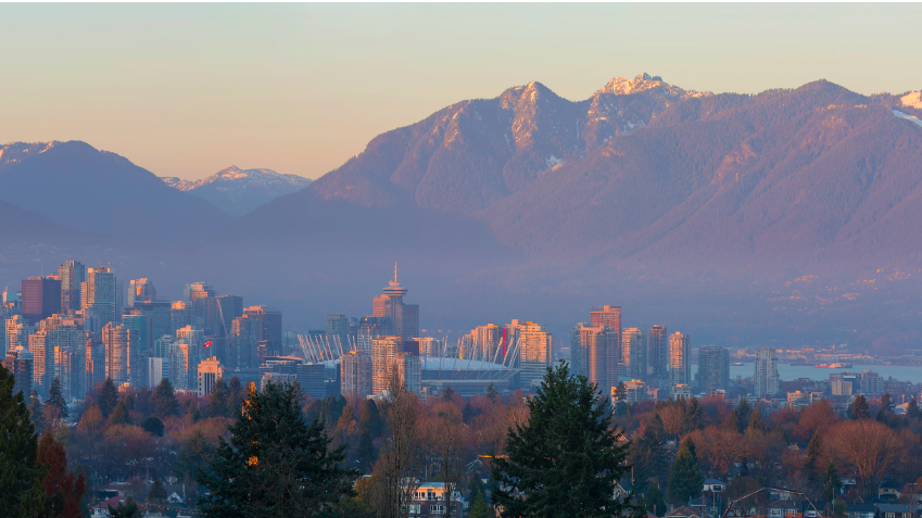 Vancouver BC Downtown Cityscape at Sunset Panorama British Columbia Canada