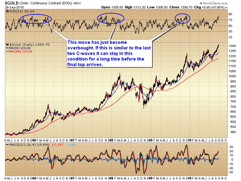 Most people have a lot of trouble buying anything when it’s in an overbought condition (they have trouble buying when it’s oversold too). Unfortunately virtually every breakout occurs from overbought levels. This is especially true during a powerful C-wave advance.