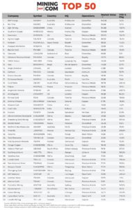 MINING TOP 50 Q3 2025 Frik Els | October 15, 2025 | 12:29 pm Share Comments Cancel replyYour email address will not be published. Required fields are marked * Save my name, email, and website in this browser for the next time I comment. Δ No comments found. More News BHP’s Vicuna unveils $18 billion copper investment in Argentina The project is forecast to average 395,000 tons of copper, 711,000 ounces of gold, and 22.2 million ounces of silver annually over its first 25 years. February 16, 2026 | 01:26 pm {{ commodity.name }} {{ post.title }} {{ post.excerpt }} {{ post.date }} First < {{ page }} > Last