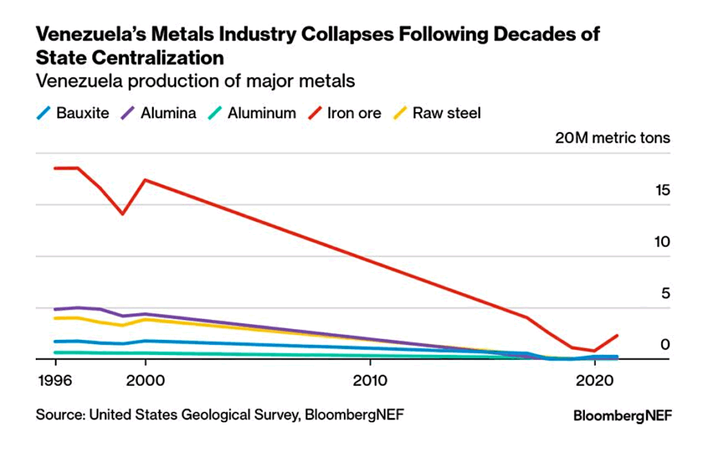 Twenty years ago, the country ranked as the world’s 12th-largest iron ore producer and eighth-largest producer of bauxite. Since then, output has collapsed.
