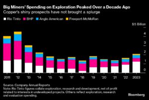 Big Miners’ Spending on Exploration Peaked Over a Decade Ago | Copper’s shiny prospects have not brought a splurge Amanda Stutt | September 19, 2024 | 3:51 pm Share Comments Cancel replyYour email address will not be published. Required fields are marked * Save my name, email, and website in this browser for the next time I comment. Δ No comments found. More News BHP’s Vicuna unveils $18 billion copper investment in Argentina The project is forecast to average 395,000 tons of copper, 711,000 ounces of gold, and 22.2 million ounces of silver annually over its first 25 years. February 16, 2026 | 01:26 pm {{ commodity.name }} {{ post.title }} {{ post.excerpt }} {{ post.date }} First < {{ page }} > Last