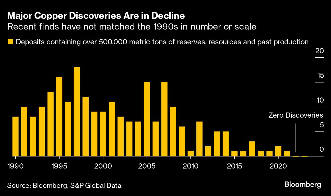 Major Copper Discoveries Are in Decline | Recent finds have not matched the 1990s in number or scale Amanda Stutt | September 19, 2024 | 3:54 pm Share Comments Cancel replyYour email address will not be published. Required fields are marked * Save my name, email, and website in this browser for the next time I comment. Δ No comments found. More News BHP’s Vicuna unveils $18 billion copper investment in Argentina The project is forecast to average 395,000 tons of copper, 711,000 ounces of gold, and 22.2 million ounces of silver annually over its first 25 years. February 16, 2026 | 01:26 pm {{ commodity.name }} {{ post.title }} {{ post.excerpt }} {{ post.date }} First < {{ page }} > Last
