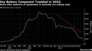 Key Battery Component Tumbled in 2023 | Some other poducers of spodumene in Australia are cutting costs Jackson Chen | January 29, 2024 | 9:58 am Share Comments Cancel replyYour email address will not be published. Required fields are marked * Save my name, email, and website in this browser for the next time I comment. Δ No comments found. More News British Columbia investor slapped with C$500,000 fine for mining misrepresentation The false claims included statements that the company was actively mining and producing a mineral. February 16, 2026 | 10:00 am {{ commodity.name }} {{ post.title }} {{ post.excerpt }} {{ post.date }} First < {{ page }} > Last