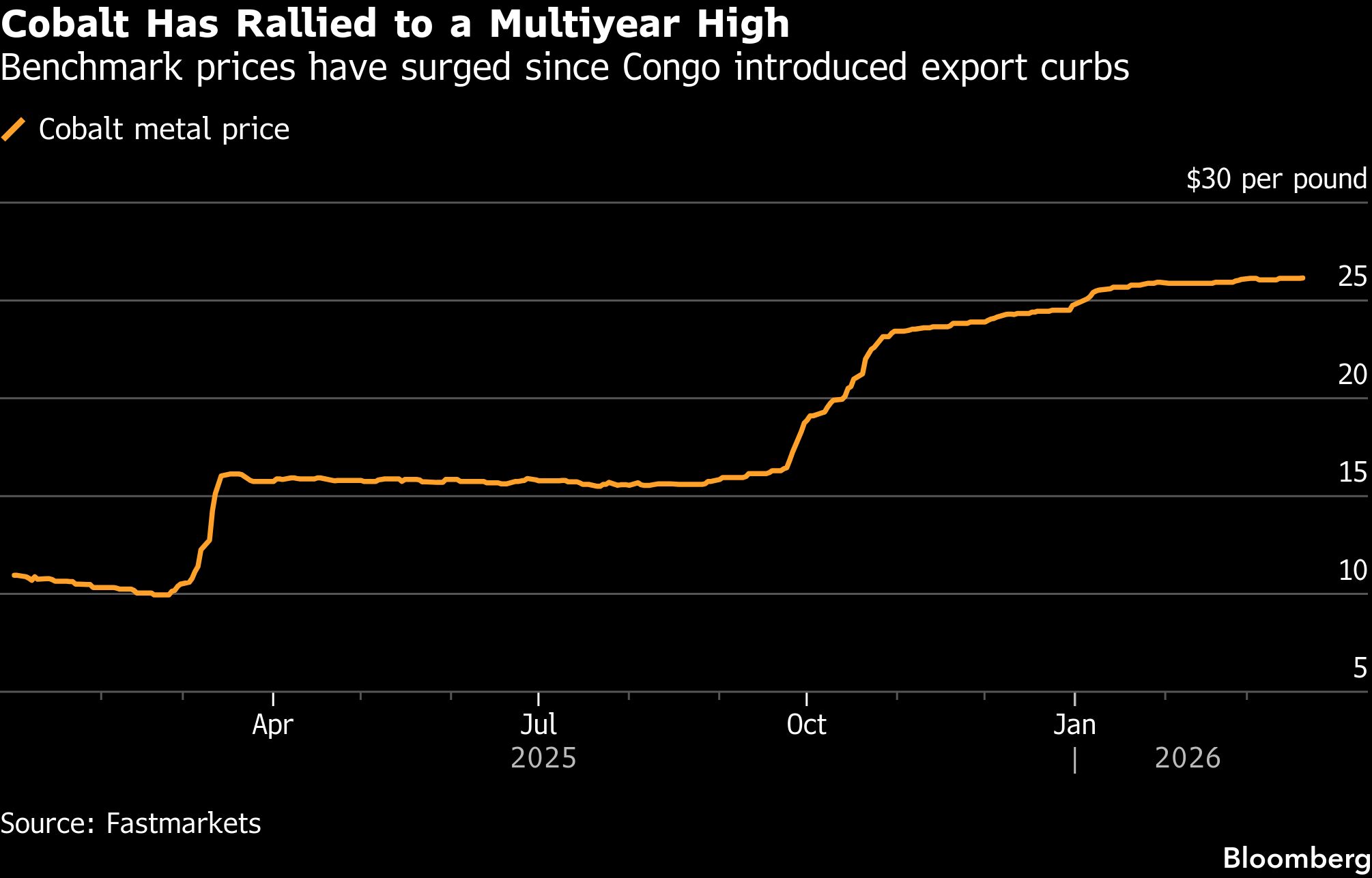 Cobalt Has Rallied to a Multiyear High | Benchmark prices have surged since Congo introduced export curbs