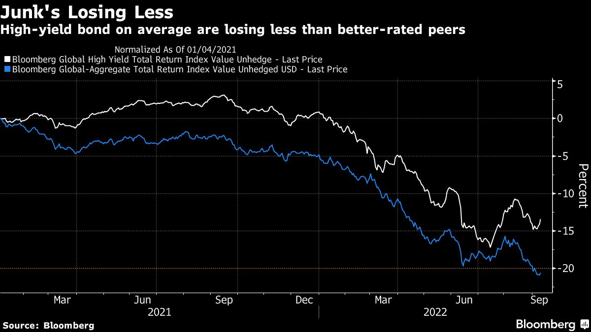 High-yield bond on average are losing less than better-rated peers