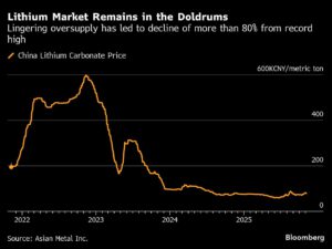 Lithium Market Remains in the Doldrums | Lingering oversupply has led to decline of more than 80% from record high Jackson Chen | November 7, 2025 | 9:07 am Share Comments Cancel replyYour email address will not be published. Required fields are marked * Save my name, email, and website in this browser for the next time I comment. Δ No comments found. More News Legal analysis: What Project Vault means for critical minerals regulation White House confirmed the start of the project, which would combine $1.67B in private capital with a $10B loan from the US Export-Import Bank to buy and store minerals. February 16, 2026 | 11:16 am {{ commodity.name }} {{ post.title }} {{ post.excerpt }} {{ post.date }} First < {{ page }} > Last