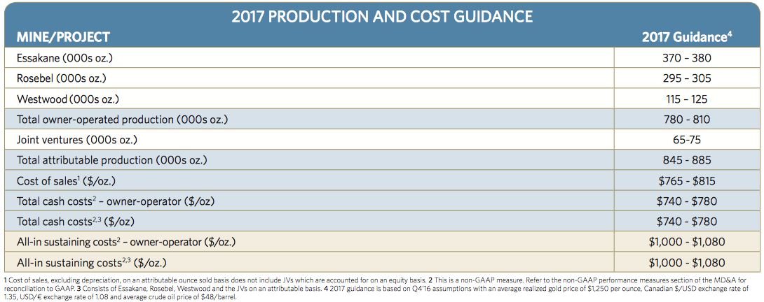 IAMGOLD operating mines 2017 Production and Cost Guidance