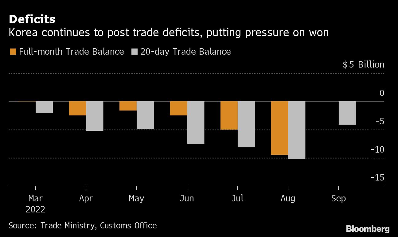 Deficits | Korea continues to post trade deficits, putting pressure on won Story: Charting the global economy: Fed headlines concert of rate hikes