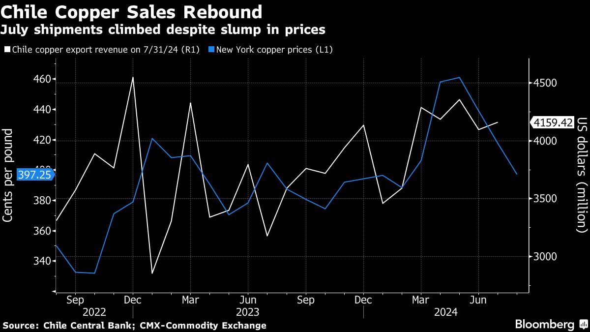 Chile Copper Sales Rebound | July shipments climbed despite slump in prices Bruno Venditti | August 7, 2024 | 7:15 am Share Comments Cancel replyYour email address will not be published. Required fields are marked * Save my name, email, and website in this browser for the next time I comment. Δ No comments found. More News Mexico and Canada plan joint action on minerals The countries will present an joint action plan on minerals, infrastructure and supply chains in the second half of the year. February 16, 2026 | 09:46 am {{ commodity.name }} {{ post.title }} {{ post.excerpt }} {{ post.date }} First < {{ page }} > Last