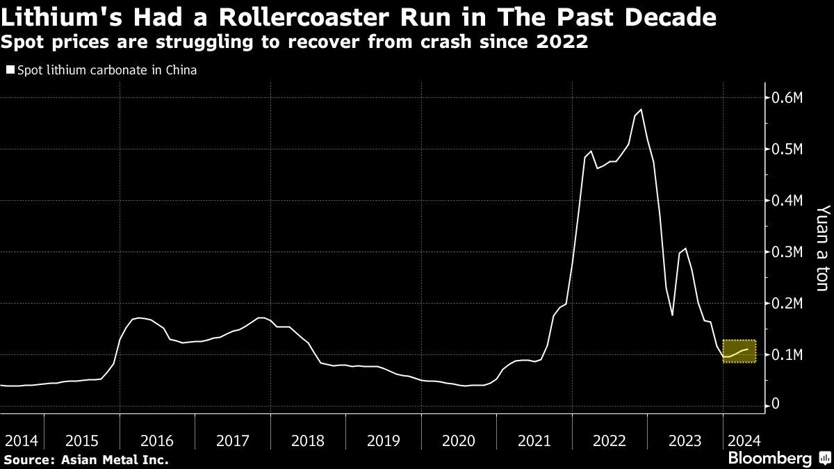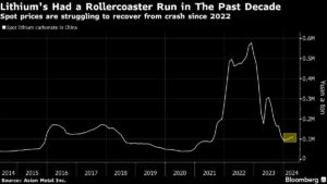 Lithium’s Had a Rollercoaster Run in The Past Decade | Spot prices are struggling to recover from crash since 2022 Jackson Chen | April 30, 2024 | 7:42 am Share Comments Cancel replyYour email address will not be published. Required fields are marked * Save my name, email, and website in this browser for the next time I comment. Δ No comments found. More News Legal analysis: What Project Vault means for critical minerals regulation White House confirmed the start of the project, which would combine $1.67B in private capital with a $10B loan from the US Export-Import Bank to buy and store minerals. February 16, 2026 | 11:16 am {{ commodity.name }} {{ post.title }} {{ post.excerpt }} {{ post.date }} First < {{ page }} > Last