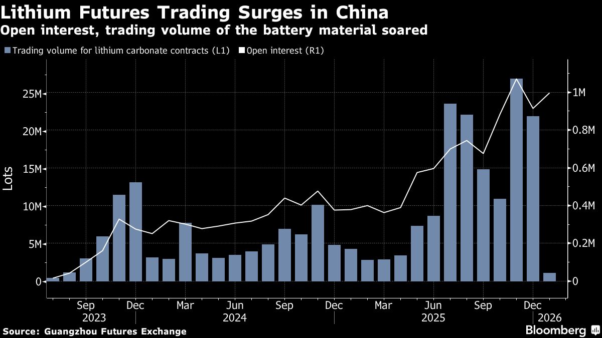 Lithium Futures Trading Surges in China | Open interest, trading volume of the battery material soared Amanda Stutt | January 7, 2026 | 5:01 pm Share Comments Cancel replyYour email address will not be published. Required fields are marked * Save my name, email, and website in this browser for the next time I comment. Δ No comments found. More News CHART: EV battery metals index jumps to 27-month high EV battery raw materials bill tops $2 billion for the first time since August 2023 and surging lithium, nickel prices going into 2026 puts slump definitively in the rearview mirror. February 16, 2026 | 11:28 am {{ commodity.name }} {{ post.title }} {{ post.excerpt }} {{ post.date }} First < {{ page }} > Last