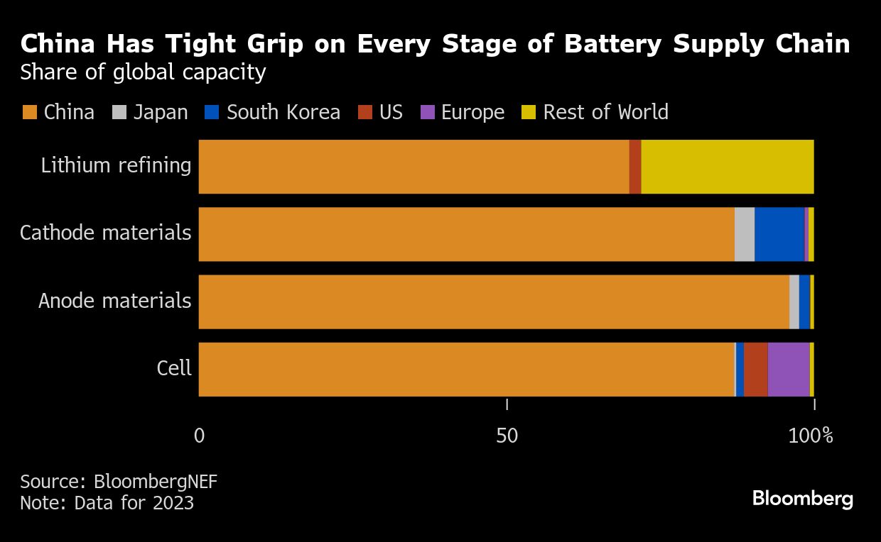China Has Tight Grip on Every Stage of Battery Supply Chain | Share of global capacity Jackson Chen | January 3, 2025 | 10:02 am Share Comments Cancel replyYour email address will not be published. Required fields are marked * Save my name, email, and website in this browser for the next time I comment. Δ No comments found. More News African Rainbow Minerals founder steps down from executive role Patrice Motsepe has served as ARM's executive chairman since founding the diversified miner in 2003. February 16, 2026 | 07:46 am {{ commodity.name }} {{ post.title }} {{ post.excerpt }} {{ post.date }} First < {{ page }} > Last