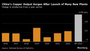 China’s Copper Output Surges After Launch of Many New Plants | Change in production from a year earlier Jackson Chen | November 13, 2023 | 1:08 pm Share Comments Cancel replyYour email address will not be published. Required fields are marked * Save my name, email, and website in this browser for the next time I comment. Δ No comments found. More News British Columbia investor slapped with C$500,000 fine for mining misrepresentation The false claims included statements that the company was actively mining and producing a mineral. February 16, 2026 | 10:00 am {{ commodity.name }} {{ post.title }} {{ post.excerpt }} {{ post.date }} First < {{ page }} > Last
