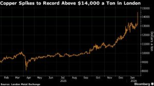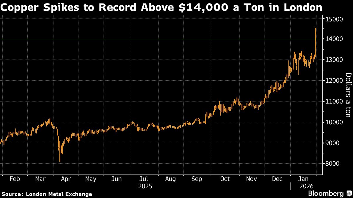 Copper Spikes to Record Above $14,000 a Ton in London Jackson Chen | January 29, 2026 | 11:27 am Share Comments Cancel replyYour email address will not be published. Required fields are marked * Save my name, email, and website in this browser for the next time I comment. Δ No comments found. More News Copper price: Global exchange stocks top 1 million tonnes first time in 21 years Copper stocks on the world's biggest metal exchanges have exceeded 1 million tons for the first time since 2004. February 16, 2026 | 12:35 pm {{ commodity.name }} {{ post.title }} {{ post.excerpt }} {{ post.date }} First < {{ page }} > Last
