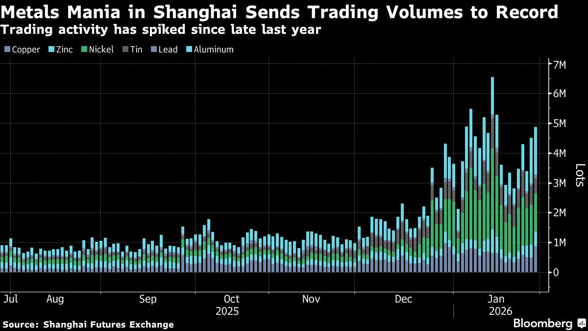 Metals Mania in Shanghai Sends Trading Volumes to Record | Trading activity has spiked since late last year Jackson Chen | January 29, 2026 | 11:26 am Share Comments Cancel replyYour email address will not be published. Required fields are marked * Save my name, email, and website in this browser for the next time I comment. Δ No comments found. More News Mexico and Canada plan joint action on minerals The countries will present an joint action plan on minerals, infrastructure and supply chains in the second half of the year. February 16, 2026 | 09:46 am {{ commodity.name }} {{ post.title }} {{ post.excerpt }} {{ post.date }} First < {{ page }} > Last