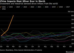 China Imports Most Silver Ever in March | Investment and industrial demand drove inflows from the world