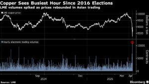 Copper Sees Busiest Hour Since 2016 Elections | LME volumes spiked as prices rebounded in Asian trading Bruno Venditti | April 7, 2025 | 8:56 am Share Comments Cancel replyYour email address will not be published. Required fields are marked * Save my name, email, and website in this browser for the next time I comment. Δ No comments found. More News BHP’s Vicuna unveils $18 billion copper investment in Argentina The project is forecast to average 395,000 tons of copper, 711,000 ounces of gold, and 22.2 million ounces of silver annually over its first 25 years. February 16, 2026 | 01:26 pm {{ commodity.name }} {{ post.title }} {{ post.excerpt }} {{ post.date }} First < {{ page }} > Last