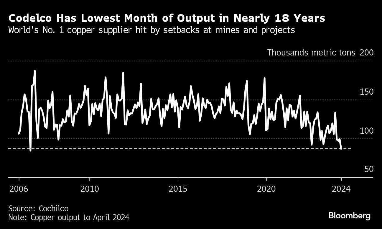 Codelco Has Lowest Month of Output in Nearly 18 Years | World’s No. 1 copper supplier hit by setbacks at mines and projects Amanda Stutt | June 11, 2024 | 3:39 pm Share Comments Cancel replyYour email address will not be published. Required fields are marked * Save my name, email, and website in this browser for the next time I comment. Δ No comments found. More News Mexico and Canada plan joint action on minerals The countries will present an joint action plan on minerals, infrastructure and supply chains in the second half of the year. February 16, 2026 | 09:46 am {{ commodity.name }} {{ post.title }} {{ post.excerpt }} {{ post.date }} First < {{ page }} > Last
