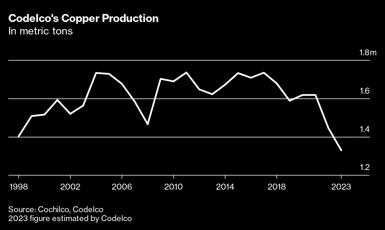 Codelco’s Copper Production | In metric tons Jackson Chen | August 29, 2023 | 4:37 pm Share Comments Cancel replyYour email address will not be published. Required fields are marked * Save my name, email, and website in this browser for the next time I comment. Δ No comments found. More News Lithuania may sign minerals deal with US if EU moves too slowly For months, the US and its trading partners have worked toward a cooperation to wean their supply chains off China. February 13, 2026 | 04:24 pm {{ commodity.name }} {{ post.title }} {{ post.excerpt }} {{ post.date }} First < {{ page }} > Last