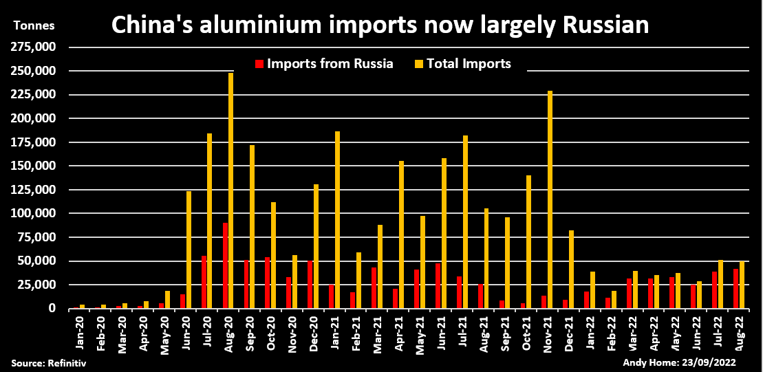 China-Al-Imports-from-Russia Jackson Chen | September 23, 2022 | 9:32 am Share Comments Cancel replyYour email address will not be published. Required fields are marked * Save my name, email, and website in this browser for the next time I comment. Δ No comments found. More News Mexico and Canada plan joint action on minerals The countries will present an joint action plan on minerals, infrastructure and supply chains in the second half of the year. February 16, 2026 | 09:46 am {{ commodity.name }} {{ post.title }} {{ post.excerpt }} {{ post.date }} First < {{ page }} > Last