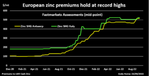 Zinc-European-Premiums-Sep-2022 Jackson Chen | September 16, 2022 | 10:45 am Share Comments Cancel replyYour email address will not be published. Required fields are marked * Save my name, email, and website in this browser for the next time I comment. Δ No comments found. More News Iran says potential energy, mining deals on table in talks with US Iran has threatened to strike US bases in the Middle East if it is attacked by US forces but on Sunday took a conciliatory line. February 15, 2026 | 09:34 am {{ commodity.name }} {{ post.title }} {{ post.excerpt }} {{ post.date }} First < {{ page }} > Last