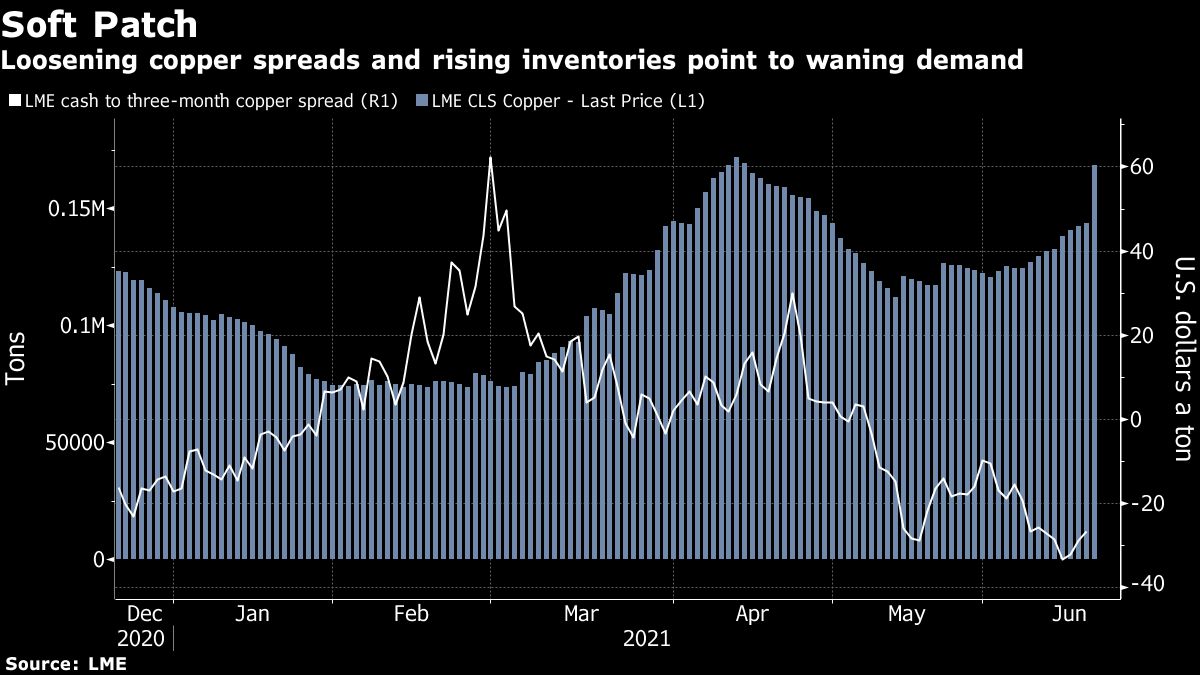 Loosening copper spreads and rising inventories point to waning demand Jackson Chen | June 18, 2021 | 1:07 pm Share Comments Cancel replyYour email address will not be published. Required fields are marked * Save my name, email, and website in this browser for the next time I comment. Δ No comments found. More News African Rainbow Minerals founder steps down from executive role Patrice Motsepe has served as ARM's executive chairman since founding the diversified miner in 2003. February 16, 2026 | 07:46 am {{ commodity.name }} {{ post.title }} {{ post.excerpt }} {{ post.date }} First < {{ page }} > Last