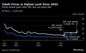 Cobalt Prices at Highest Level Since 2022 | Prices extend gains after DRC lays out quota plan Jackson Chen | October 13, 2025 | 8:07 am Share Comments Cancel replyYour email address will not be published. Required fields are marked * Save my name, email, and website in this browser for the next time I comment. Δ No comments found. More News African Rainbow Minerals founder steps down from executive role Patrice Motsepe has served as ARM's executive chairman since founding the diversified miner in 2003. February 16, 2026 | 07:46 am {{ commodity.name }} {{ post.title }} {{ post.excerpt }} {{ post.date }} First < {{ page }} > Last