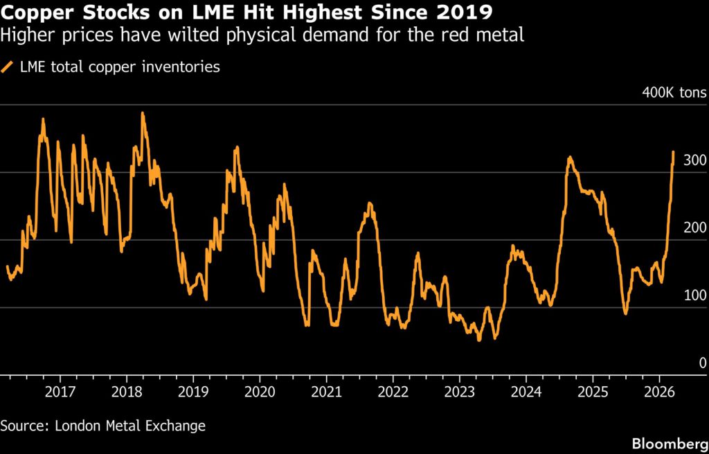 A rapid buildup of exchange stockpiles since the start of the year reflects a growing bearish mood in the physical market for copper. Sellers have struggled to offload cargoes as demand weakens in China, while a rush to ship metal to the US ahead of potential tariffs has waned. Prices that reached a record above $14,500 at the end of January, and remain 30% up from a year ago, are giving many buyers pause.
