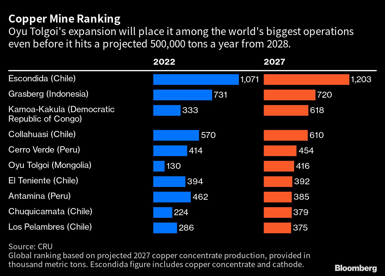 Copper Mine Ranking | Oyu Tolgoi’s expansion will place it among the world’s biggest operations even before it hits a projected 500,000 tons a year from 2028. Bruno Venditti | May 3, 2023 | 7:58 am Share Comments Cancel replyYour email address will not be published. Required fields are marked * Save my name, email, and website in this browser for the next time I comment. Δ No comments found. More News Super Copper’s Cordillera project approved by Chile’s National Mining Authority The concessions cover approximately 6,858 hectares in the Atacama copper belt. December 24, 2025 | 11:24 am {{ commodity.name }} {{ post.title }} {{ post.excerpt }} {{ post.date }} First < {{ page }} > Last