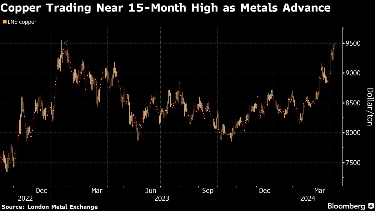 Copper Trading Near 15-Month High as Metals Advance Jackson Chen | April 10, 2024 | 5:42 am Share Comments Cancel replyYour email address will not be published. Required fields are marked * Save my name, email, and website in this browser for the next time I comment. Δ No comments found. More News Mexico and Canada plan joint action on minerals The countries will present an joint action plan on minerals, infrastructure and supply chains in the second half of the year. February 16, 2026 | 09:46 am {{ commodity.name }} {{ post.title }} {{ post.excerpt }} {{ post.date }} First < {{ page }} > Last