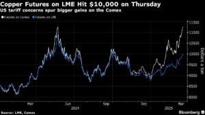 Copper Futures on LME Hit $10,000 on Thursday | US tariff concerns spur bigger gains on the Comex Bruno Venditti | March 20, 2025 | 7:42 am Share Comments Cancel replyYour email address will not be published. Required fields are marked * Save my name, email, and website in this browser for the next time I comment. Δ No comments found. More News BHP’s Vicuna unveils $18 billion copper investment in Argentina The project is forecast to average 395,000 tons of copper, 711,000 ounces of gold, and 22.2 million ounces of silver annually over its first 25 years. February 16, 2026 | 01:26 pm {{ commodity.name }} {{ post.title }} {{ post.excerpt }} {{ post.date }} First < {{ page }} > Last