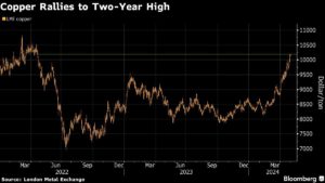 Copper Rallies to Two-Year High Jackson Chen | April 30, 2024 | 5:19 am Share Comments Cancel replyYour email address will not be published. Required fields are marked * Save my name, email, and website in this browser for the next time I comment. Δ No comments found. More News BHP’s Vicuna unveils $18 billion copper investment in Argentina The project is forecast to average 395,000 tons of copper, 711,000 ounces of gold, and 22.2 million ounces of silver annually over its first 25 years. February 16, 2026 | 01:26 pm {{ commodity.name }} {{ post.title }} {{ post.excerpt }} {{ post.date }} First < {{ page }} > Last