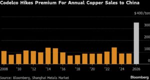Codelco Hikes Premium For Annual Copper Sales to China Jackson Chen | November 28, 2025 | 8:29 am Share Comments Cancel replyYour email address will not be published. Required fields are marked * Save my name, email, and website in this browser for the next time I comment. Δ No comments found. More News Contract worker dies at Rio Tinto’s Simandou mine in Guinea Last August, a contract worker died in an incident at the same mine. February 16, 2026 | 06:20 am {{ commodity.name }} {{ post.title }} {{ post.excerpt }} {{ post.date }} First < {{ page }} > Last