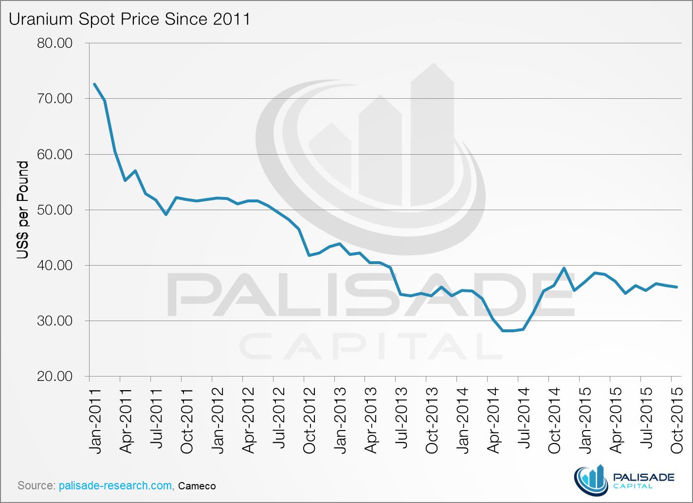 Uranium Spot Price Since 2011 MINING.COM Staff Writer | November 12, 2015 | 11:05 am Share Comments Cancel replyYour email address will not be published. Required fields are marked * Save my name, email, and website in this browser for the next time I comment. Δ No comments found. More News Lithuania may sign minerals deal with US if EU moves too slowly For months, the US and its trading partners have worked toward a cooperation to wean their supply chains off China. February 13, 2026 | 04:24 pm {{ commodity.name }} {{ post.title }} {{ post.excerpt }} {{ post.date }} First < {{ page }} > Last