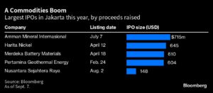 A Commodities Boom | Largest IPOs in Jakarta this year, by proceeds raised Jackson Chen | October 6, 2023 | 2:02 pm Share Comments Cancel replyYour email address will not be published. Required fields are marked * Save my name, email, and website in this browser for the next time I comment. Δ No comments found. More News Critical Metals expects to close Greenland supply deals in Q1 2026, CEO says The company has already pre-sold 75% of planned output, split between the US and Europe. December 31, 2025 | 12:08 pm {{ commodity.name }} {{ post.title }} {{ post.excerpt }} {{ post.date }} First < {{ page }} > Last