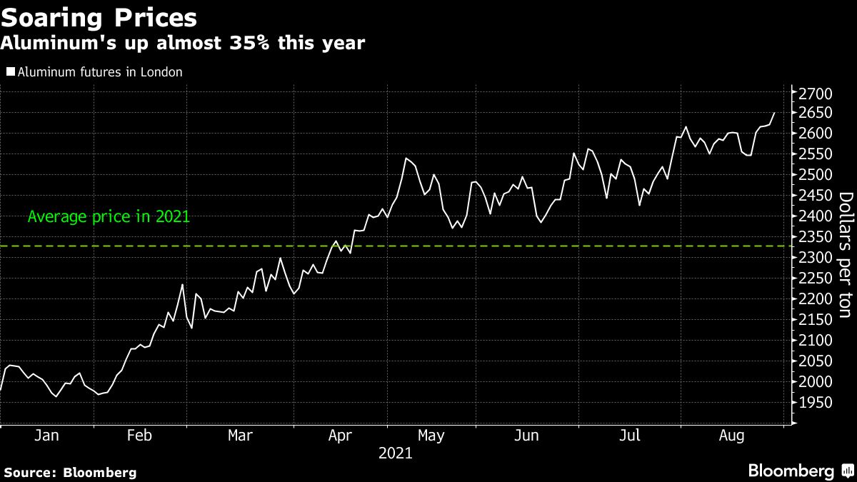 Aluminum’s up almost 35% this year Amanda Stutt | August 30, 2021 | 11:44 am Share Comments Cancel replyYour email address will not be published. Required fields are marked * Save my name, email, and website in this browser for the next time I comment. Δ No comments found. More News Trafigura’s Nyrstar ships first antimony batch from Australia plant The Port Pirie facility has the potential to produce up to 5,000 tons of antimony per year. February 16, 2026 | 07:16 am {{ commodity.name }} {{ post.title }} {{ post.excerpt }} {{ post.date }} First < {{ page }} > Last