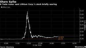 A Tesla rumor sent Lithium Corp.’s stock briefly soaring Jackson Chen | April 13, 2022 | 11:47 am Share Comments Cancel replyYour email address will not be published. Required fields are marked * Save my name, email, and website in this browser for the next time I comment. Δ No comments found. More News British Columbia investor slapped with C$500,000 fine for mining misrepresentation The false claims included statements that the company was actively mining and producing a mineral. February 16, 2026 | 10:00 am {{ commodity.name }} {{ post.title }} {{ post.excerpt }} {{ post.date }} First < {{ page }} > Last