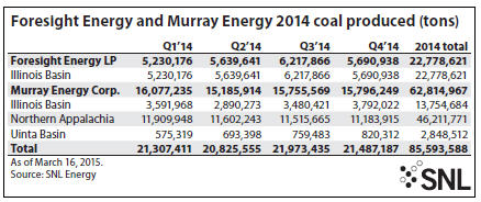 Foresight Energy and Murray Energy 2014 coal produced SNL MINING.COM Staff Writer | March 18, 2015 | 10:17 am Share Comments Cancel replyYour email address will not be published. Required fields are marked * Save my name, email, and website in this browser for the next time I comment. Δ No comments found. More News BHP’s Vicuna unveils $18 billion copper investment in Argentina The project is forecast to average 395,000 tons of copper, 711,000 ounces of gold, and 22.2 million ounces of silver annually over its first 25 years. February 16, 2026 | 01:26 pm {{ commodity.name }} {{ post.title }} {{ post.excerpt }} {{ post.date }} First < {{ page }} > Last