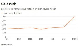 BANKS-PRECIOUS-PROFITS Jackson Chen | September 21, 2020 | 9:02 am Share Comments Cancel replyYour email address will not be published. Required fields are marked * Save my name, email, and website in this browser for the next time I comment. Δ No comments found. More News British Columbia investor slapped with C$500,000 fine for mining misrepresentation The false claims included statements that the company was actively mining and producing a mineral. February 16, 2026 | 10:00 am {{ commodity.name }} {{ post.title }} {{ post.excerpt }} {{ post.date }} First < {{ page }} > Last