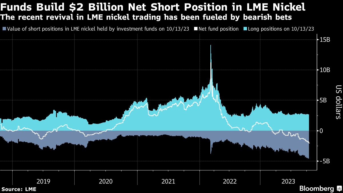 Funds Build $2 Billion Net Short Position in LME Nickel | The recent revival in LME nickel trading has been fueled by bearish bets Jackson Chen | October 18, 2023 | 9:37 am Share Comments Cancel replyYour email address will not be published. Required fields are marked * Save my name, email, and website in this browser for the next time I comment. Δ No comments found. More News BHP’s Vicuna unveils $18 billion copper investment in Argentina The project is forecast to average 395,000 tons of copper, 711,000 ounces of gold, and 22.2 million ounces of silver annually over its first 25 years. February 16, 2026 | 01:26 pm {{ commodity.name }} {{ post.title }} {{ post.excerpt }} {{ post.date }} First < {{ page }} > Last