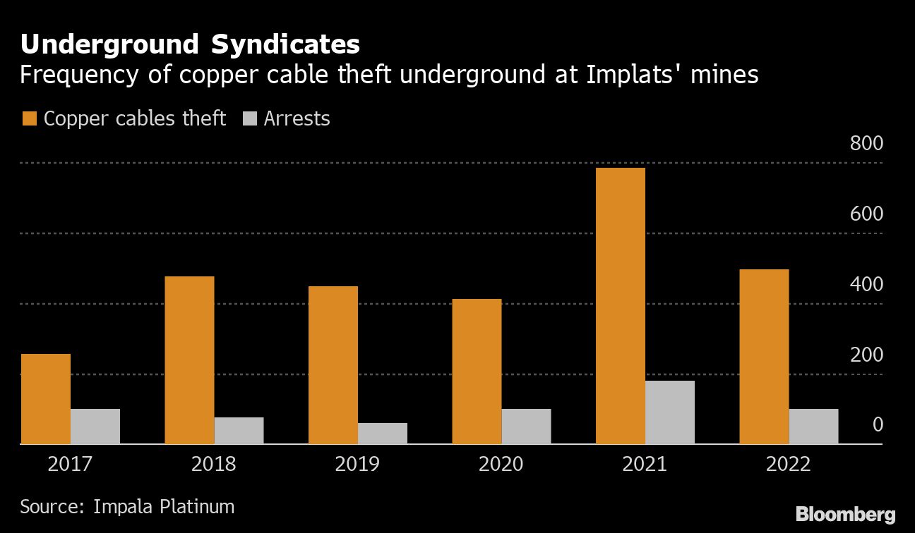 Underground Syndicates | Frequency of copper cable theft underground at Implats’ mines