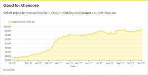Glencore’s timing was spot on. The price of cobalt has more than doubled over the past year amid investor excitement about the extra demand that will be created by lithium-ion batteries used in electric vehicles. Thanks to its Congolese assets, Glencore’s share of global cobalt supply will rise to about 30 percent, estimates UBS. Chief executive Ivan Glasenberg thinks there could be a cobalt shortage in coming years and therefore further price increases. Such a supply squeeze would be great news for Glencore’s cash flows, of course. A 10 percent increase in the cobalt price means an extra $150 million in Ebitda, estimates Barclays.