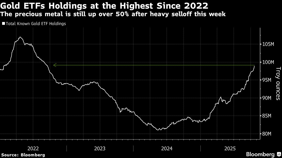 Gold ETFs Holdings at the Highest Since 2022 | The precious metal is still up over 50% after heavy selloff this week Jackson Chen | October 22, 2025 | 9:12 am Share Comments Cancel replyYour email address will not be published. Required fields are marked * Save my name, email, and website in this browser for the next time I comment. Δ No comments found. More News BHP’s Vicuna unveils $18 billion copper investment in Argentina The project is forecast to average 395,000 tons of copper, 711,000 ounces of gold, and 22.2 million ounces of silver annually over its first 25 years. February 16, 2026 | 01:26 pm {{ commodity.name }} {{ post.title }} {{ post.excerpt }} {{ post.date }} First < {{ page }} > Last