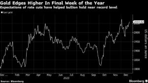 Gold Edges Higher In Final Week of the Year | Expectations of rate cuts have helped bullion hold near record level Valentina Ruiz Leotaud | December 26, 2023 | 9:11 am Share Comments Cancel replyYour email address will not be published. Required fields are marked * Save my name, email, and website in this browser for the next time I comment. Δ No comments found. More News BHP’s Vicuna unveils $18 billion copper investment in Argentina The project is forecast to average 395,000 tons of copper, 711,000 ounces of gold, and 22.2 million ounces of silver annually over its first 25 years. February 16, 2026 | 01:26 pm {{ commodity.name }} {{ post.title }} {{ post.excerpt }} {{ post.date }} First < {{ page }} > Last