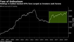 Holdings in bullion-backed ETFs have surged as investors seek havens Jackson Chen | August 22, 2019 | 3:25 pm Share Comments Cancel replyYour email address will not be published. Required fields are marked * Save my name, email, and website in this browser for the next time I comment. Δ No comments found. More News Rio Tinto and BHP to lead Australia earnings rebound Both miners enter 2026 set for earnings outperformance, buoyed by commodity prices that help valuations catch up with broader equity markets. February 16, 2026 | 08:49 am {{ commodity.name }} {{ post.title }} {{ post.excerpt }} {{ post.date }} First < {{ page }} > Last