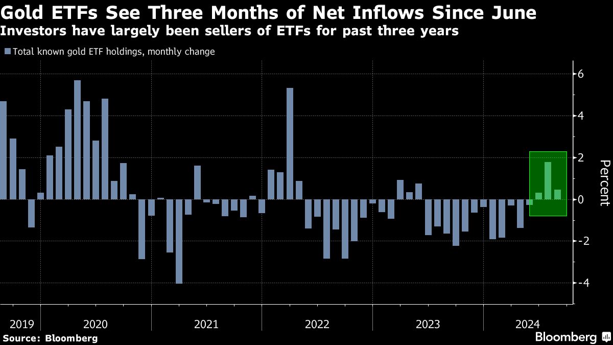 Gold ETFs See Three Months of Net Inflows Since June | Investors have largely been sellers of ETFs for past three years Jackson Chen | September 20, 2024 | 9:21 am Share Comments Cancel replyYour email address will not be published. Required fields are marked * Save my name, email, and website in this browser for the next time I comment. Δ No comments found. More News CHART: EV battery metals index jumps to 27-month high EV battery raw materials bill tops $2 billion for the first time since August 2023 and surging lithium, nickel prices going into 2026 puts slump definitively in the rearview mirror. February 16, 2026 | 11:28 am {{ commodity.name }} {{ post.title }} {{ post.excerpt }} {{ post.date }} First < {{ page }} > Last
