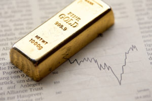 Gold bullion on the graph as crisis safe haven, financial asset, investment and wealth concept…