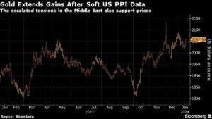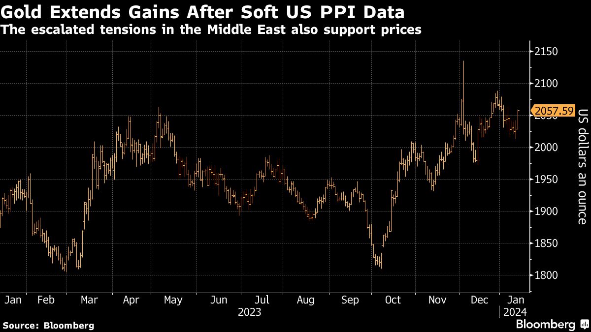 Gold Extends Gains After Soft US PPI Data | The escalated tensions in the Middle East also support prices Jackson Chen | January 12, 2024 | 10:01 am Share Comments Cancel replyYour email address will not be published. Required fields are marked * Save my name, email, and website in this browser for the next time I comment. Δ No comments found. More News Copper price: Global exchange stocks top 1 million tonnes first time in 21 years Copper stocks on the world's biggest metal exchanges have exceeded 1 million tons for the first time since 2004. February 16, 2026 | 12:35 pm {{ commodity.name }} {{ post.title }} {{ post.excerpt }} {{ post.date }} First < {{ page }} > Last