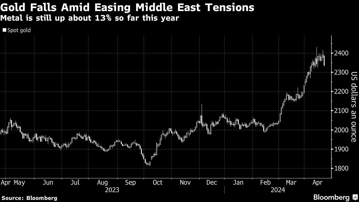 Gold Falls Amid Easing Middle East Tensions | Metal is still up about 13% so far this year Jackson Chen | April 22, 2024 | 9:09 am Share Comments Cancel replyYour email address will not be published. Required fields are marked * Save my name, email, and website in this browser for the next time I comment. Δ No comments found. More News Trafigura’s Nyrstar ships first antimony batch from Australia plant The Port Pirie facility has the potential to produce up to 5,000 tons of antimony per year. February 16, 2026 | 07:16 am {{ commodity.name }} {{ post.title }} {{ post.excerpt }} {{ post.date }} First < {{ page }} > Last